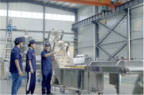 好機樂秉承讓食品生產更簡單更安全的初心和使命,堅持科技創新,持續在技術研發方面加大投入,公司擁有自主技術研發中心,碩士學歷以上員工占比80%以上。好機樂公司和河南理工大學、鄭州輕工業大學等高校建立了產學研戰略合作關系,年技術研發費用投入數百萬元。8000平食品機械定制車間位于鄭州市中牟產業園,引進了光纖激光切割機、數控折彎機、不銹鋼精拋機等專業食品機械加工設備。生產管理上公司嚴格執行ISO質量管理體系標準,同時按照6D和6S管理體系要求,持續改進產品質量,始終如一地踐行“讓食品生產更簡單更安全”。 從研發設計、生產制造到售后服務,全程為客戶提供放心的產品和服務。公司當前產品涵蓋清洗設備、油炸設備、烘烤設備、攪拌均質設備、冷卻脫水設備、輸送提升設備等六大系列80多個型號,產品應用于果蔬加工、堅果加工、面點加工、醬鹵休閑食品加工等領域。 為各類食品工業企業提供個性化定制服務是好機樂食品機械的一大突出能力和優勢,好機樂根據不同客戶客戶需求提供專業化的系統設計和定制設備。為客戶提供果蔬清洗(速凍)加工線、凍品解凍生產線、容器清洗線、油炸食品生產線、烘烤生產線、花生醬加工生產線等專業解決方案和可靠的設備。 民以食為天,食以安為先。放眼未來,好機樂食品機械將專注于持續提升技術、產品、服務三大核心競爭力,努力成為食品工業領域備受信賴的品牌。